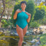 in prachtig turquoise. Dit superzachte en rekbare zwempak past op elk lichaam en heeft verstelbare veters aan de zijkant voor een pasvorm en stijl op maat, een brede haak- en oogsluiting en comfortabele bandjes die niet in je huid snijden.